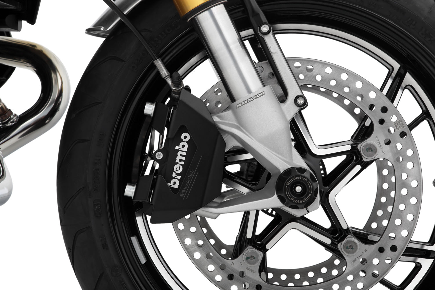 Dadurch wird die Gefahr einer Beschädigung der Bremssättel insbesondere bei intensivem Offroad-Einsatz zuverlässig verringert. Die Montage des Schutzes erfolgt unkompliziert über die beiden vorhandenen und gut zugänglichen Befestigungspunkte an der Gabel.
