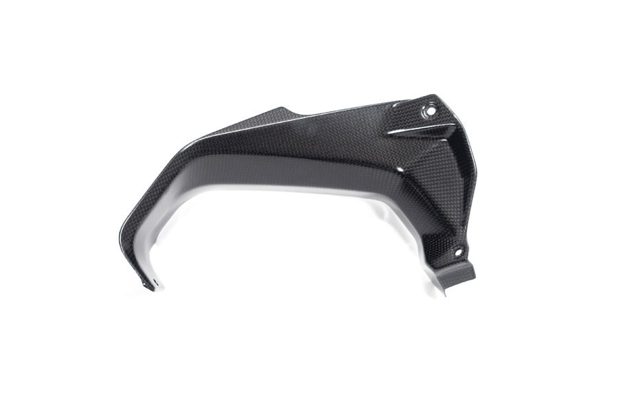 Mit bis zu 70% Gewichtseinsparung gegenüber dem Serienteil und seiner gewichtsspezifischen Steifigkeit entfaltet dieser Space Age Werkstoff sein volles Potenzial. Die Form folgt hier der Funktion und integriert sich optimal in das Design des Motorrades. Die Konturen der Maschine werden dabei ebenso aufgenommen wie Material und Oberflächenstruktur benachbarter Serienbauteile. Dieses Carbonbauteil unterstreicht den Hightech-Anspruch Ihrer Ducati mit der einzigartigen Anmutung von echtem Carbon.