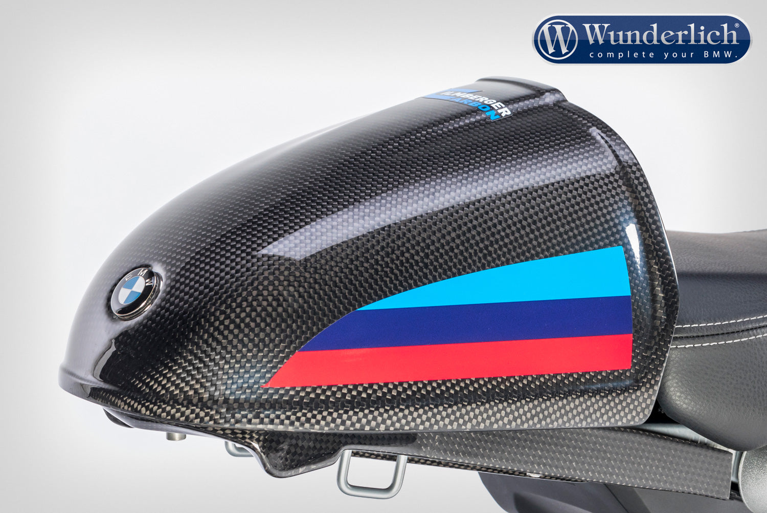 Mit bis zu 70% Gewichtseinsparung gegenüber dem Serienteil und seiner gewichtsspezifischen Steifigkeit entfaltet dieser Space Age Werkstoff sein volles Potenzial. Die Form folgt hier der Funktion und integriert sich optimal in das Design des Motorrades. Die Konturen der Maschine werden ebenso aufgenommen wie Material und Oberflächenstruktur benachbarter Serienbauteile. Dieses Carbonbauteil unterstreicht den Hightech-Anspruch Ihrer BMW mit der einzigartigen Anmutung von echtem Carbon.