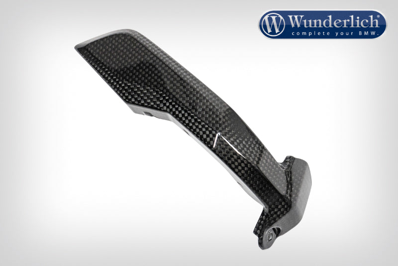Mit bis zu 70% Gewichtseinsparung gegenüber dem Serienteil und seiner gewichtsspezifischen Steifigkeit entfaltet dieser Space Age Werkstoff sein volles Potenzial. Die Form folgt hier der Funktion und integriert sich optimal in das Design des Motorrades. Die Konturen der Maschine werden ebenso aufgenommen wie Material und Oberflächenstruktur benachbarter Serienbauteile. Dieses Carbonbauteil unterstreicht den Hightech-Anspruch Ihrer BMW mit der einzigartigen Anmutung von echtem Carbon.