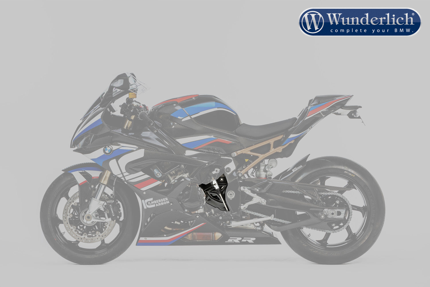 Mit bis zu 70% Gewichtseinsparung gegenüber dem Serienteil und seiner gewichtsspezifischen Steifigkeit entfaltet dieser Space Age Werkstoff sein volles Potenzial. Die Form folgt hier der Funktion und integriert sich optimal in das Design des Motorrades. Die Konturen der Maschine werden ebenso aufgenommen wie Material und Oberflächenstruktur benachbarter Serienbauteile. Dieses Carbonbauteil unterstreicht den Hightech-Anspruch Ihrer BMW mit der einzigartigen Anmutung von echtem Carbon.