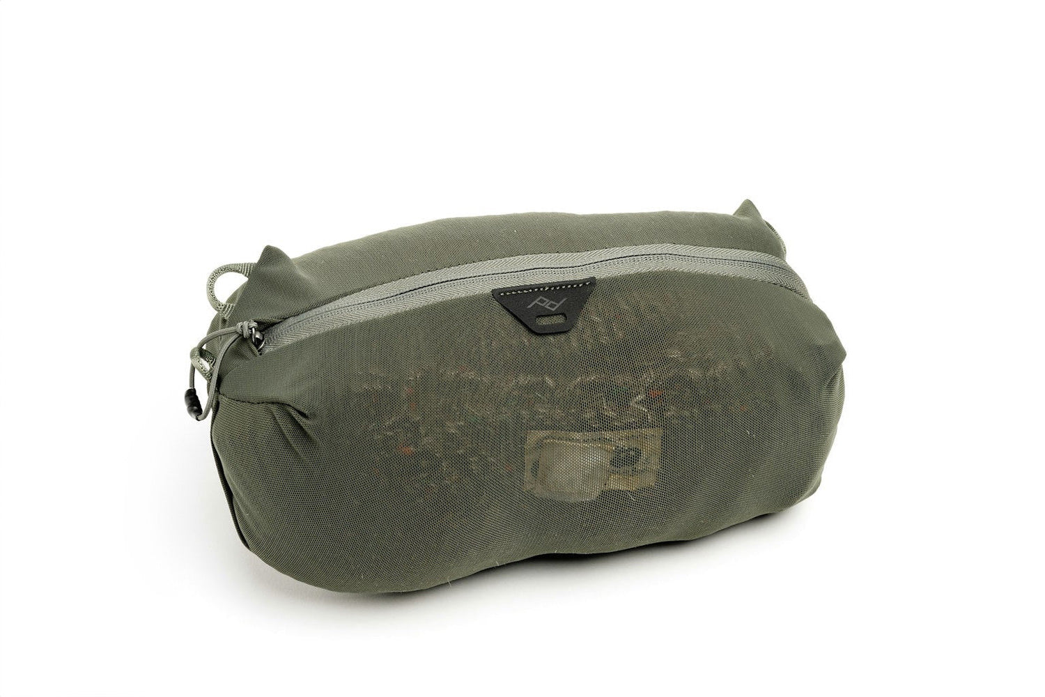 But don't go around calling these cubes simpleâthoughtful features are abound. Choose from 2 fabrics: our weatherproof Terra Shell⢠50D material, and our see-through nylon stretch mesh. Terra Shell⢠cubes have taped seams and weatherproof UltraZips⢠for enhanced water and tear resistance, while the stretch mesh can expand to double the max volume, and is also ideal for things that need to breathe. Turn your cube into an ultralight sling by attaching an adjustable carry strap or PD camera strap (both sold seperately) to the Cord Hook⢠carry loops. Or mount your cube externally on any Peak Design bag via 2 external carry strap pass-throughsâa whole new dimension to modular organization. When not in use, Ultralight Packing Cubes fold totally flat and can be rolled up and cinched with the elastic zip pull cord. Keep a few of them on hand in your pocket or bagâyou'll never stop finding uses for them.