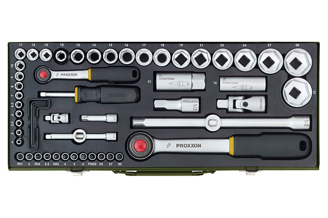 PROXXON Steckschlüsselsatz 1/4“ + 1/2“ 56-teilig