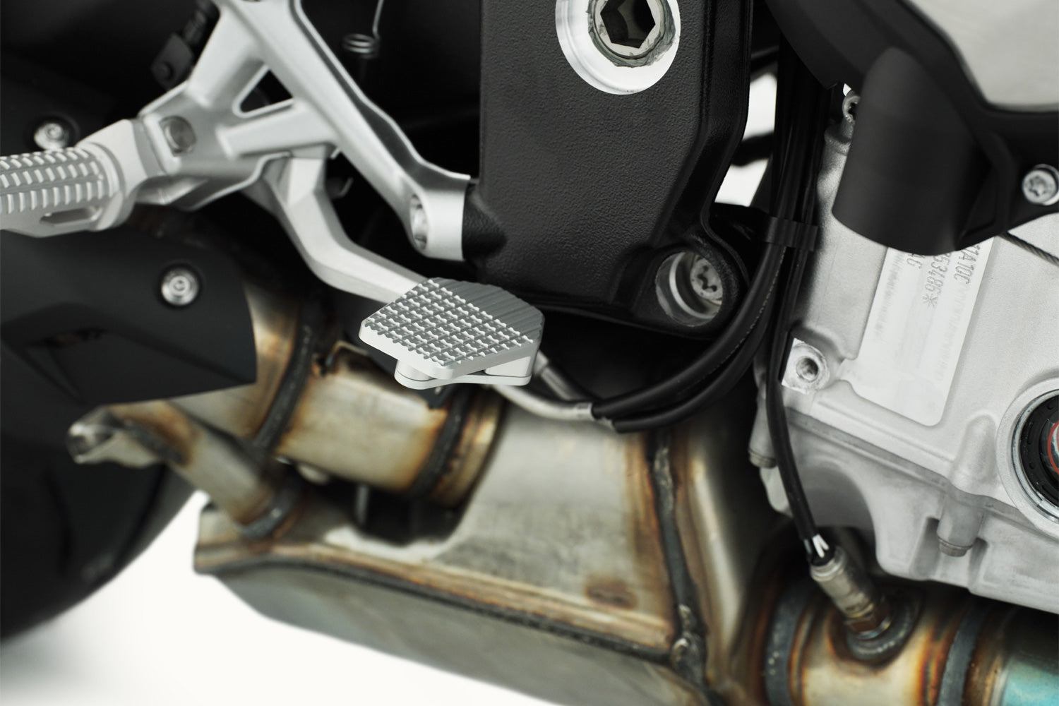 In der Originalform ist die Fußauflagefläche des Bremshebels leider recht klein, was allzu oft ein Sicherheitsrisiko darstellt. Diese Vergrößerung für den Fußbremshebel fungiert als Verlängerung des originalen Fußbremshebels. Sie wird einfach auf den Hebel geschraubt. Ein unbeabsichtigtes Abrutschen oder Versagen des Hebels und das damit verbundene „Leere-Luft-Treten“ wird damit nahezu unmöglich. Die sorgfältig gefräste Riffelung bietet Schutz gegen Abrutschen bei Nässe. Die Vergrößerung verbessert Ergonomie und Komfort und erhöht somit die passive Sicherheit.