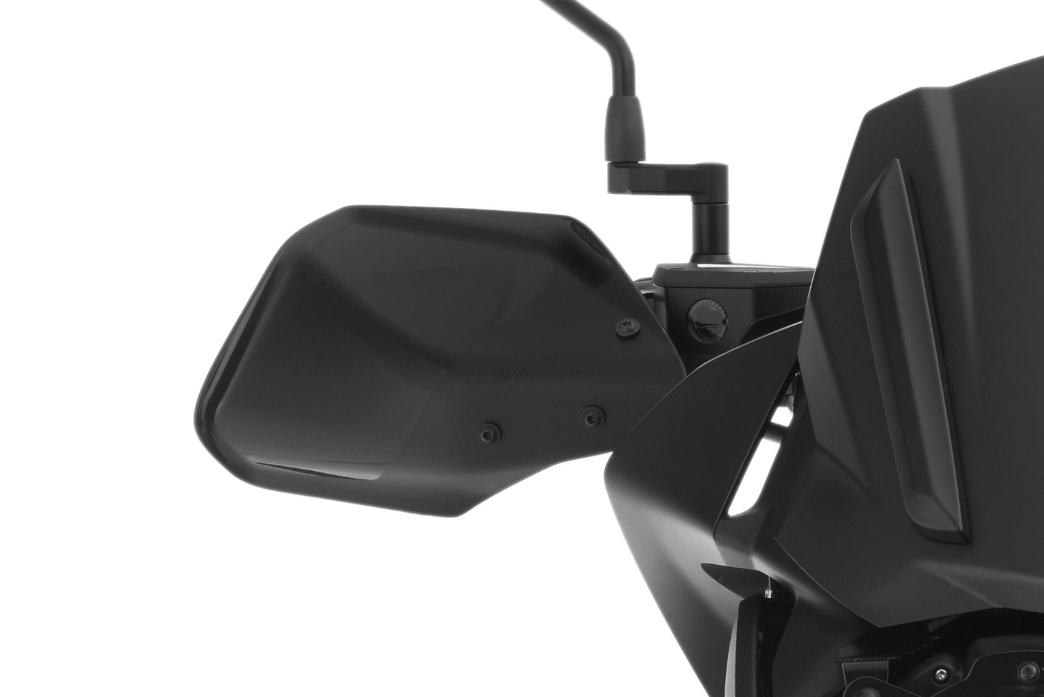 - Die Sicht des originalen Verkleidungsspiegels kann je nach Sitzposition eingeschränkt sein. Wir empfehlen daher die Verwendung unserer Zusatzspiegel Art.-Nr. 23640-000. Die Spiegel lassen sich mit minimalem Aufwand an der Halterung für die Handprotektoren befestigen und ermöglichen eine uneingeschränkte Sicht nach hinten.