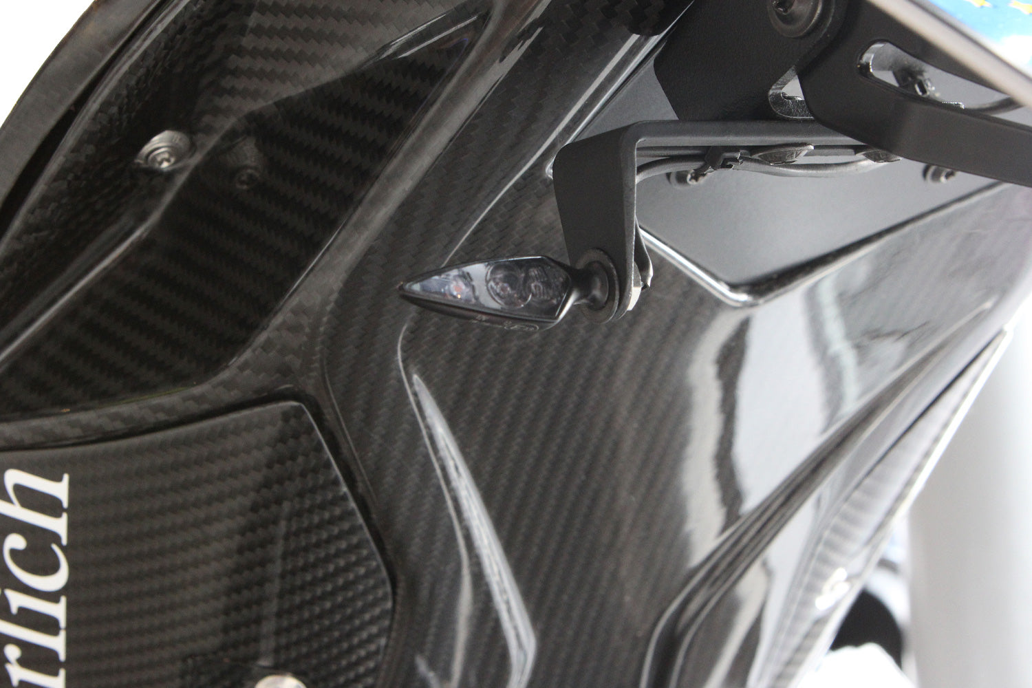 Für alle, die die Sichtbarkeit der Blinker am Heck ihres Motorrades möglichst reduzieren bzw. verstecken möchten, dabei aber die Verkehrssicherheit nicht aus den Augen verlieren möchten, haben wir dieses Set zusammengestellt. Im Set enthalten sind zwei hochwertige Blinkerhalter aus schwarz eloxiertem Aluminium. Diese beherbergen filigrane Zubehörblinker mit 8 mm Anschlussgewinde (M8). Über die integrierten Langlöcher lässt sich der Abstand des Blinkers zum Kennzeichen horizontal stufenlos und individuell einstellen.