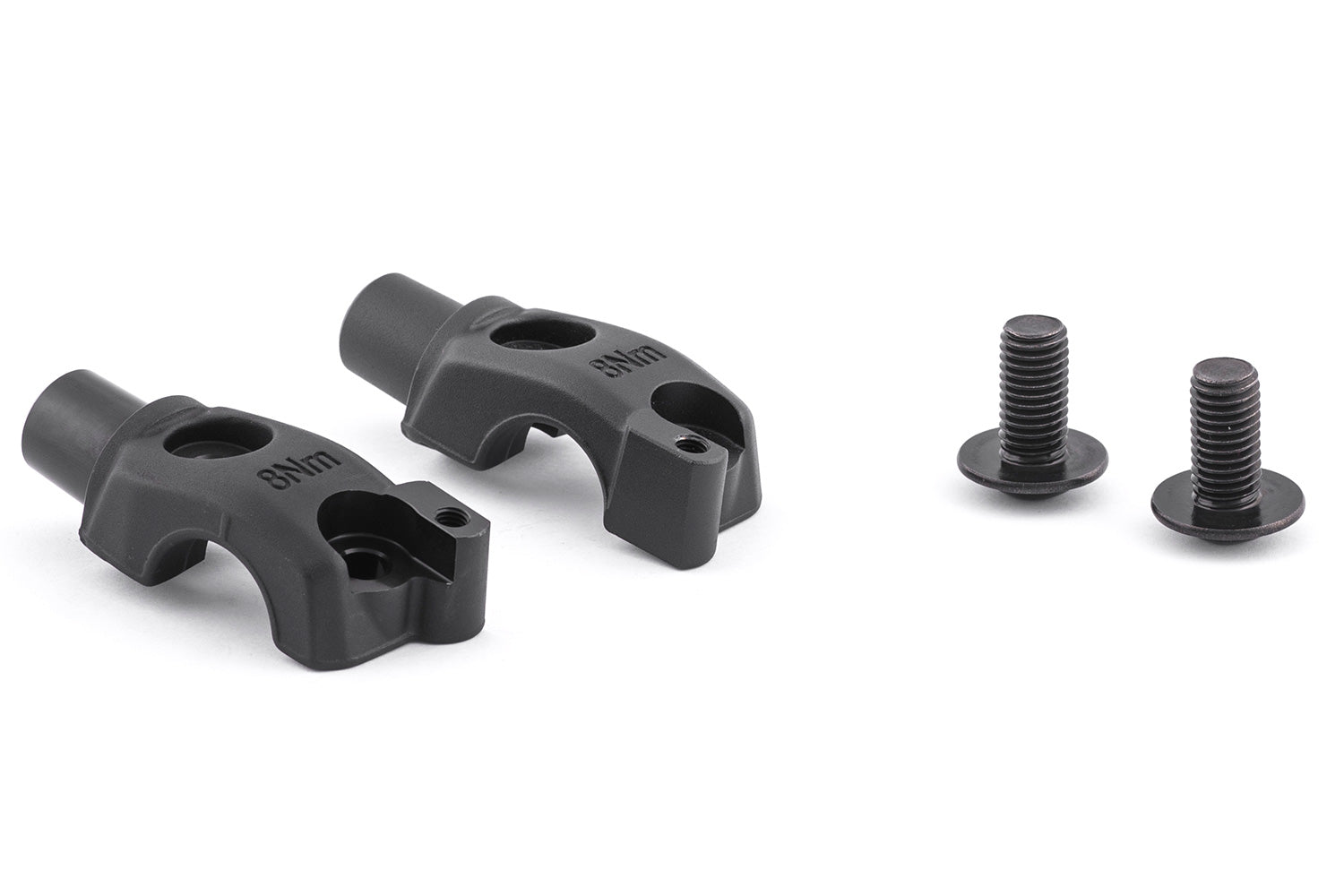 Das Montagekit besteht aus zwei Schellen samt Befestigungsmaterial und ermöglicht die Montage der „Clear Protect“ Handprotektoren in Kombination mit SOS-Taste und Schalter für die Zusatzscheinwerfer. Alternativ ist es auch zur Montage von Zusatzspiegeln an RT-Modellen geeignet.