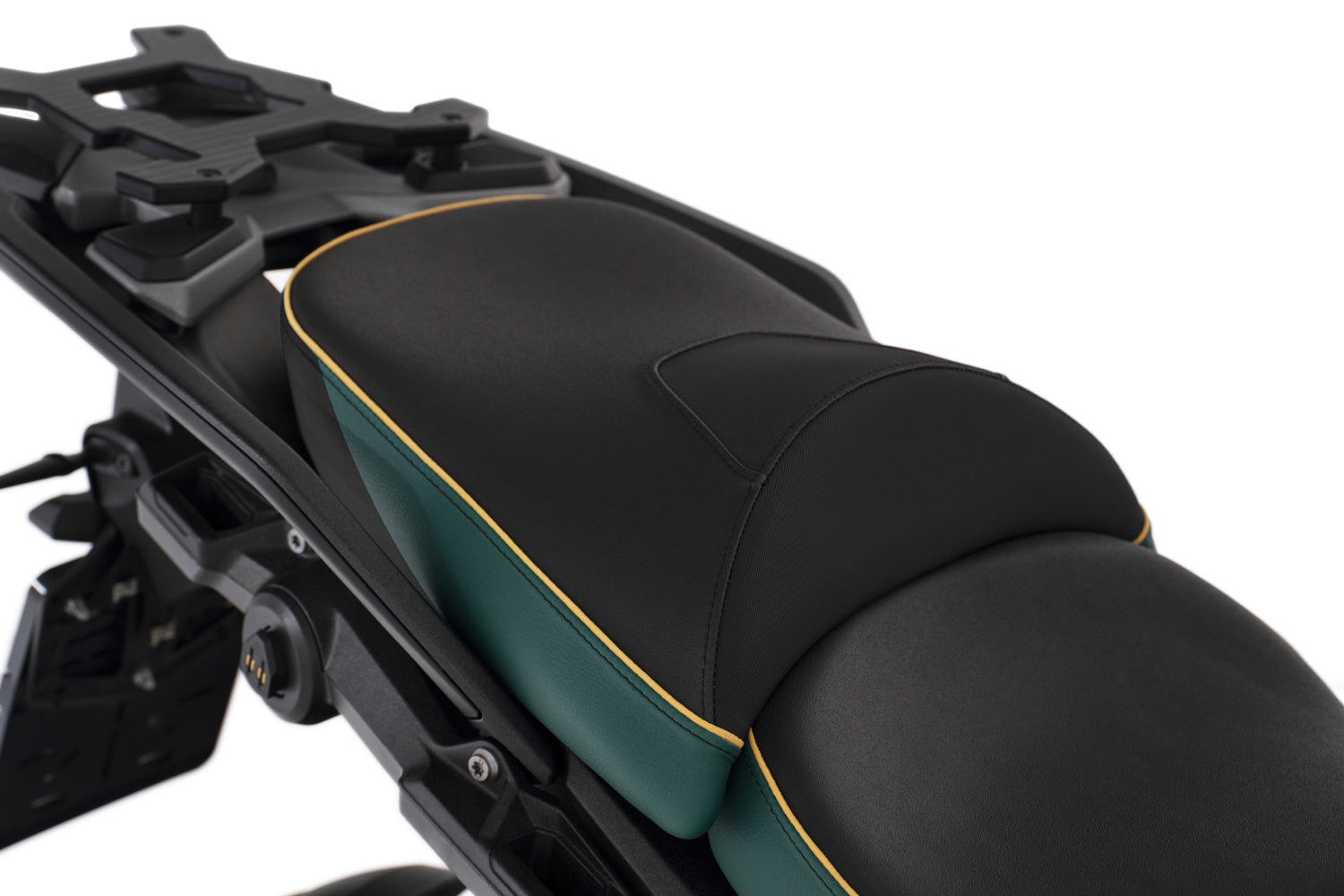 Wunderlich AKTIVKOMFORT Queens-Edition passenger seat for the BMW R 1300 GS in Green-Gold, matching the Tramuntana