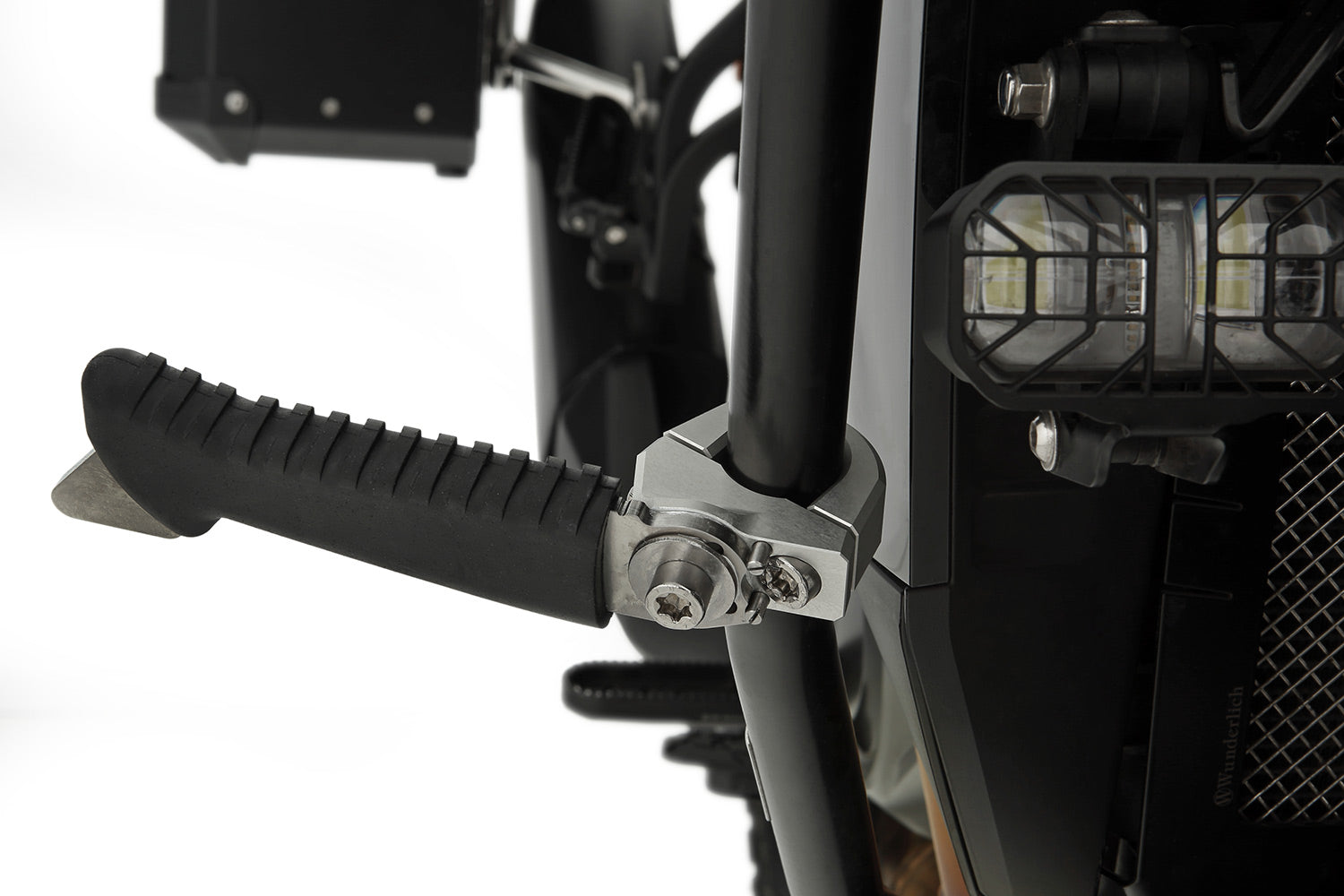 Nicht nur auf einem Chopper oder Cruiser macht es Sinn, die Beine vertreten zu können. Auch Langstreckenfahrer können auf dem Reiseenduro entspannen und sich erholen. Unsere praktischen und komfortablen Sturzbügelhalterungen sorgen für entspanntes Fahren und beugen so manchen Schmerzen und Verkrampfungen vor.