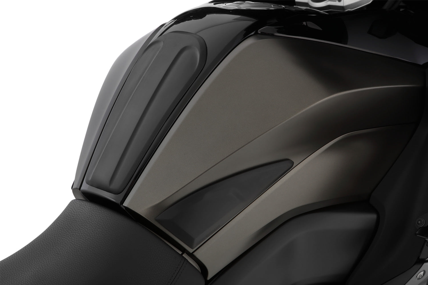 Das dreiteilige Tankpad-Set ist passend zum Design der BMW gestaltet. Die Pads schützen effektiv vor Kratzern, Beschädigungen und Abrieb an allen Kontaktpunkten, verbessern den Knieschluss und bieten durch die erhöhte Haftung einen direkteren Kontakt zum Bike. Dadurch wird das Fahrgefühl und der Fahrspaß deutlich gesteigert. Das Material besteht aus hochwertigem und griffigem schwarzem Kunststoff, ist stoßabsorbierend und leicht genarbt. Die Pads sind selbstklebend.