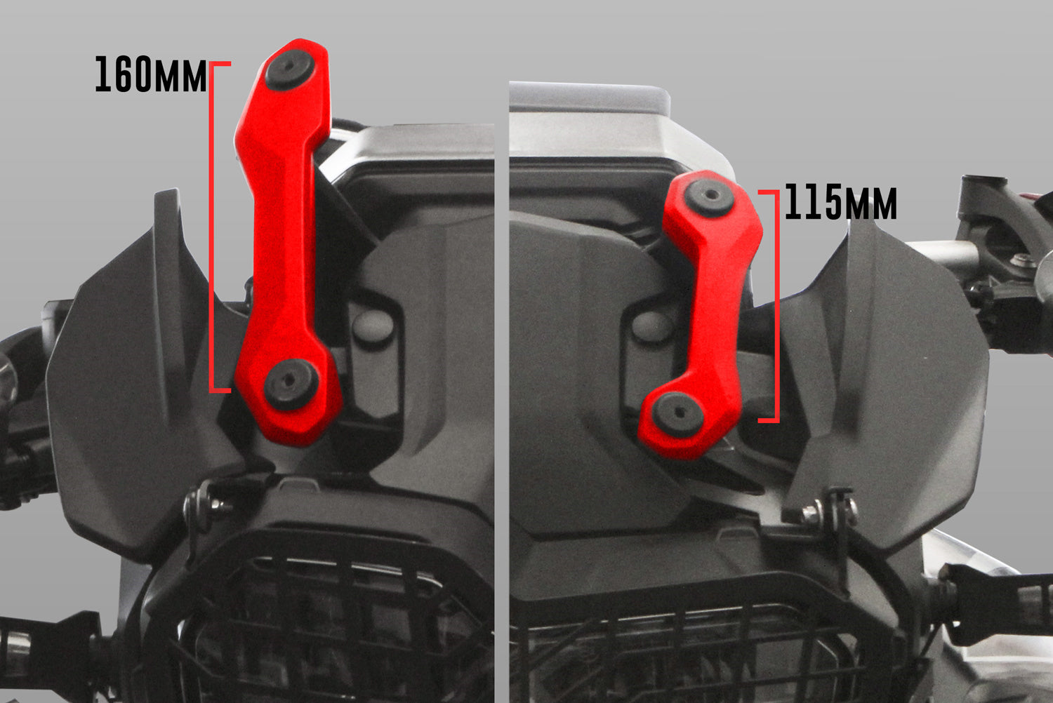 Hinweis: Dieses Windschild ist für Modelle mit langer Windschildhalterung, mit einem Schraubenabstand von 160 Millimetern, ausgelegt.
