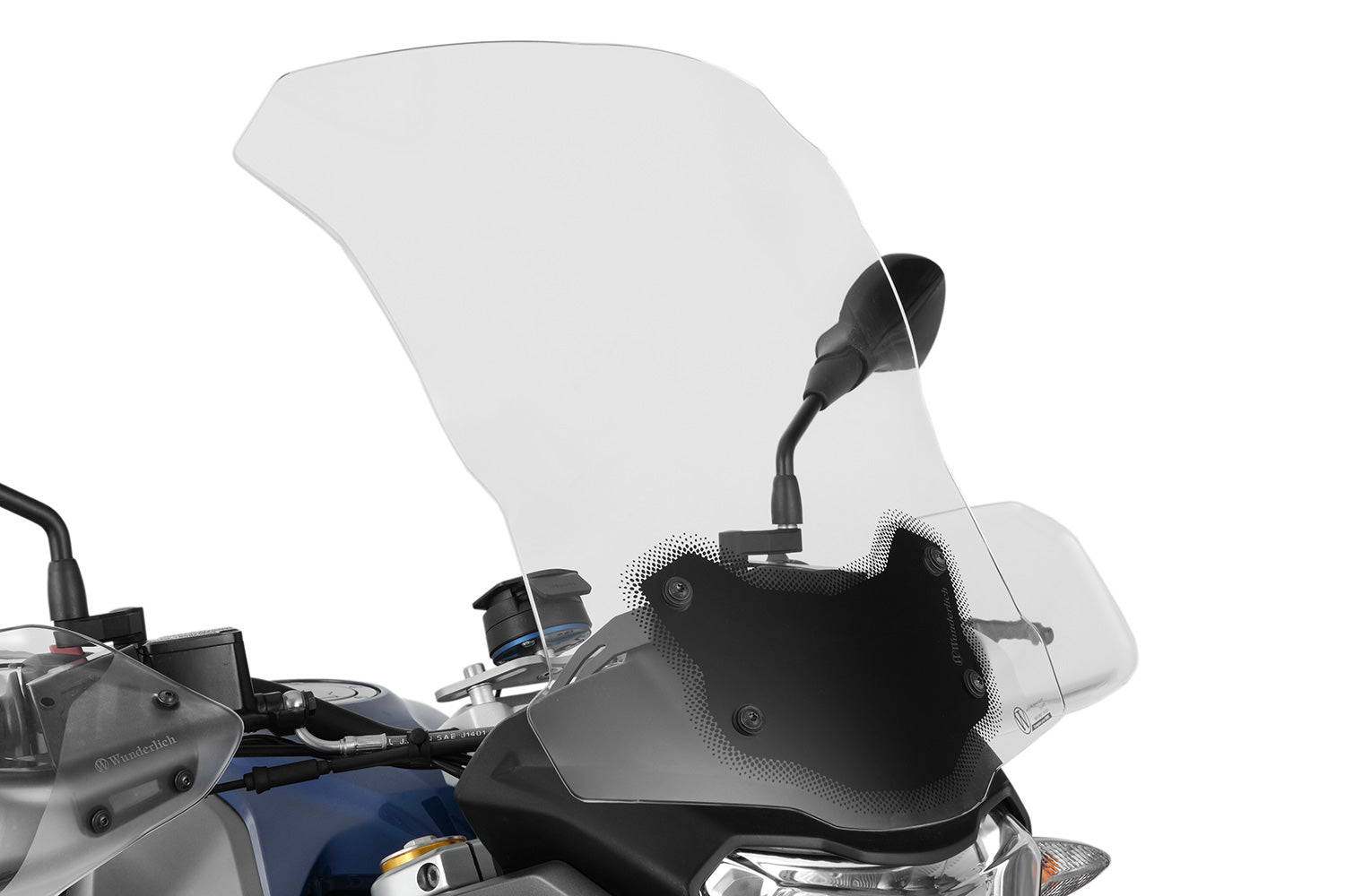 Eine höhere und breitere Tourenscheibe, die Druck und Turbulenzen eliminiert. Eine nahezu unzerstörbare, schlanke Windschutzscheibe mit hervorragenden aerodynamischen Eigenschaften.
