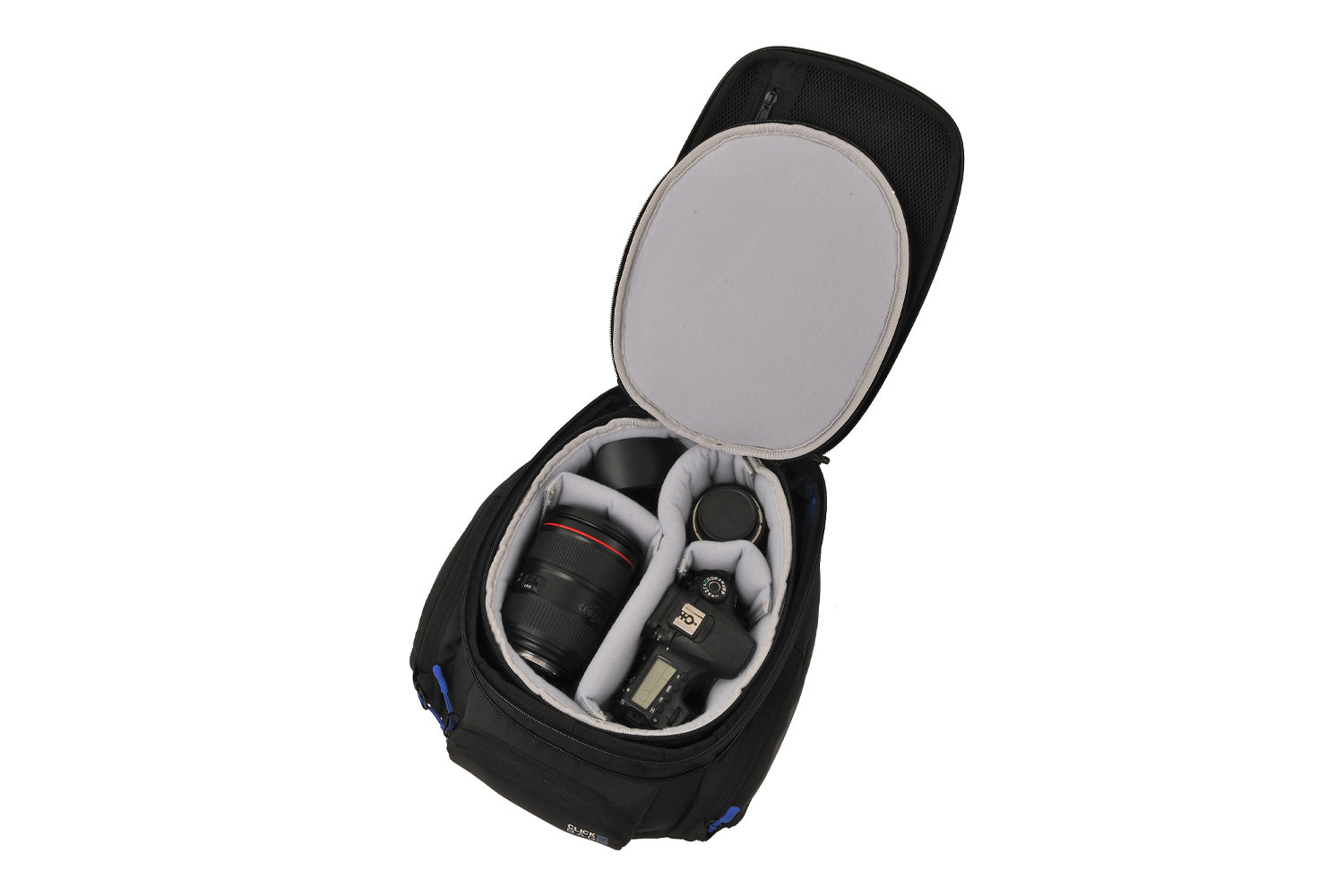 De stevige demping beschermt de waardevolle foto-uitrusting en is volledig verstelbaar dankzij betrouwbare klittenbandsluitingen. Dit betekent dat uw camera, lenzen en andere accessoires afzonderlijk kunnen worden opgeborgen op een manier die ruimte bespaart. Twee variabele lenssteunen zorgen ervoor dat u de juiste positie krijgt. Een rits rondom betekent dat de hoes royaal opengaat, zodat uw uitrusting volledig zichtbaar is en gemakkelijk vast te pakken is. Dankzij de handige handgreep kunnen de foto-inzet en alle inhoud met één hand uit de tanktas worden gehaald. De foto-inzet wordt geleverd met twee stevige ogen, zodat deze snel en comfortabel als schoudertas kan worden gebruikt met de schouderriem van onze tanktas.