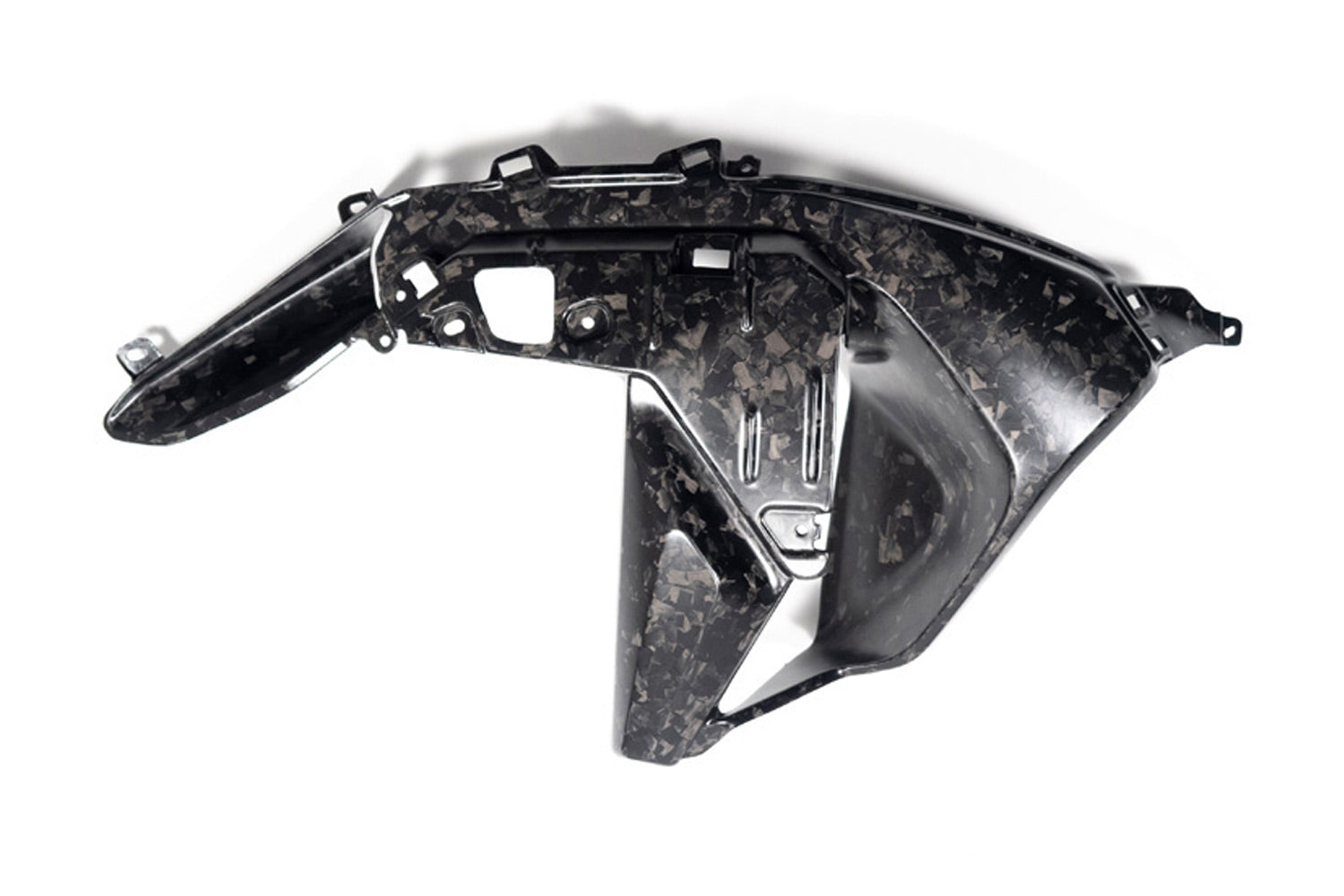 This visual highlight not only gives your bike a unique look but also ensures optimal air circulation. Perfect your offroad look and stand out from the crowd! The innovative BDC material is used here, giving the component a completely new and individual touch. The surface of the BDC part is a unique piece reminiscent of marble. The BDC is also hand-laminated at Ilmberger and cured in multiple stages in an autoclave. The material impresses not only with its exciting appearance but also with its technical properties. The different fibres disperse the incoming light, creating an unprecedented reflection. The final clear coat layer is in a modern silk-matte version, highlighting the special visual properties of the material.
