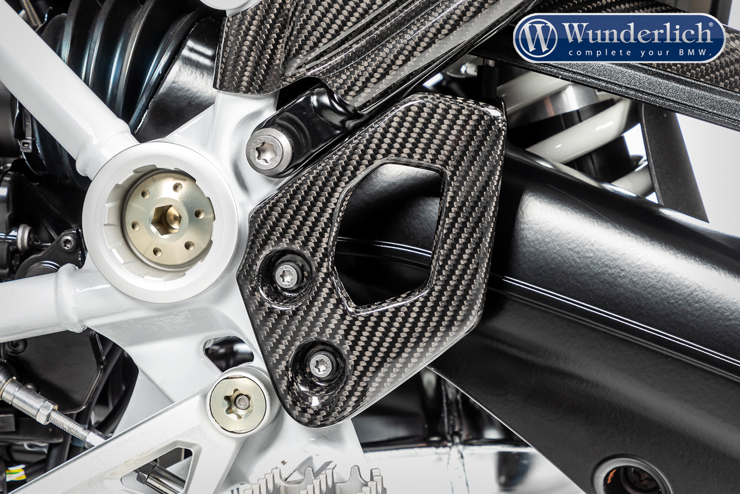 Dit ruimtetijdperkmateriaal ontvouwt zijn volledige potentieel met tot 70% gewichtsvermindering ten opzichte van het standaardonderdeel en zijn gewichtsspecifieke stijfheid. Vorm volgt hier functie en integreert optimaal in het ontwerp van de motorfiets. De contouren van de machine zijn verwerkt, evenals het materiaal en de oppervlaktestructuur van aangrenzende seriecomponenten. Dit koolstofcomponent onderstreept de hightechclaim van uw BMW met de unieke aantrekkingskracht van echt koolstof.
