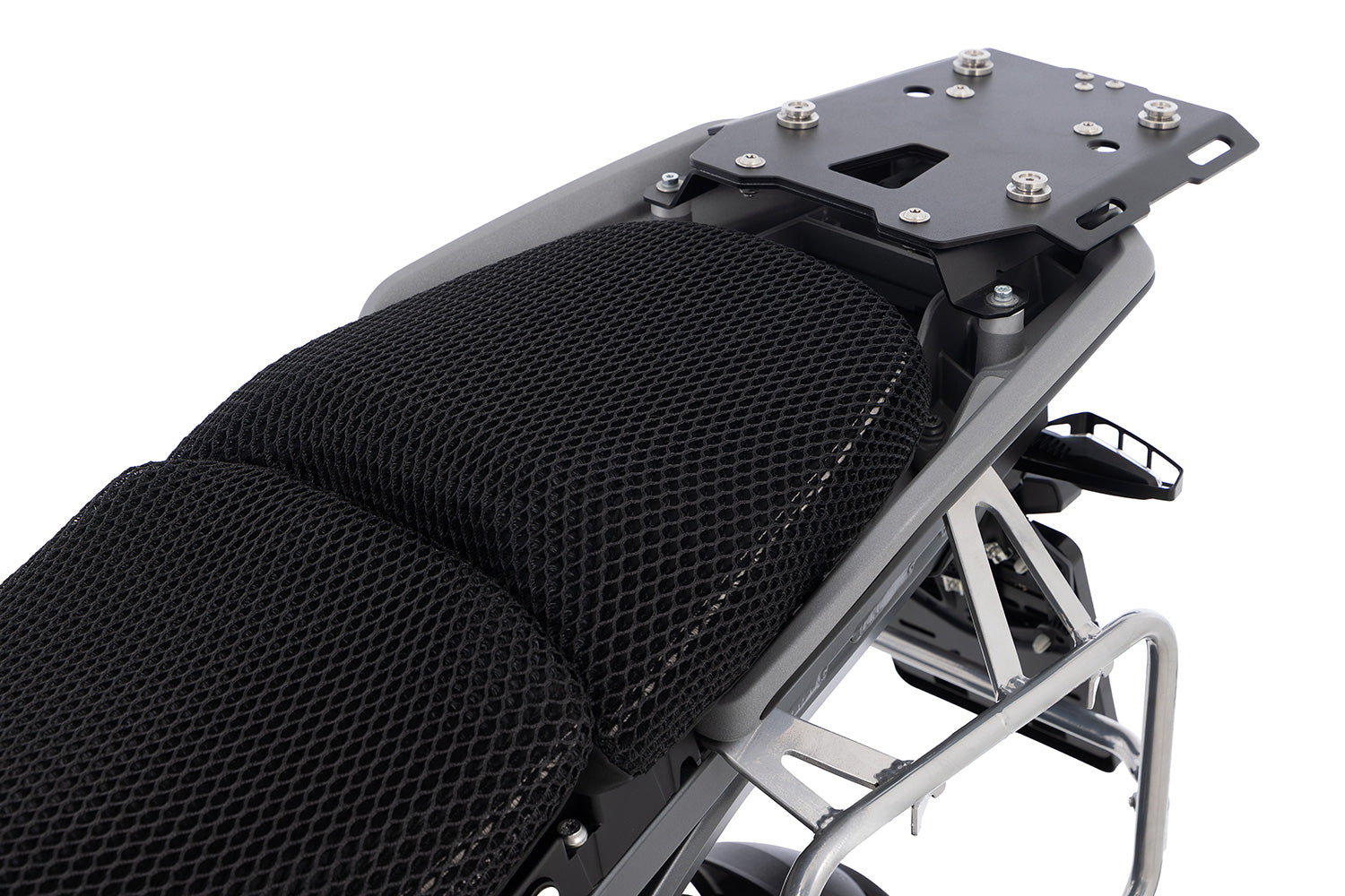 This seat cover is the climate control for your original BMW bike seat. The air can circulate while riding because the cover is constructed in three dimensions and is eight millimetres thick. It doesn't completely compromise even with a lot of weight: Not only is the air permeability assured, but the seat even stays dry in the rain. The Cool Cover also doesn't heat up in sunlight. An additional benefit: It creates an effect resembling a massage and thus reduces the symptoms of tiredness.