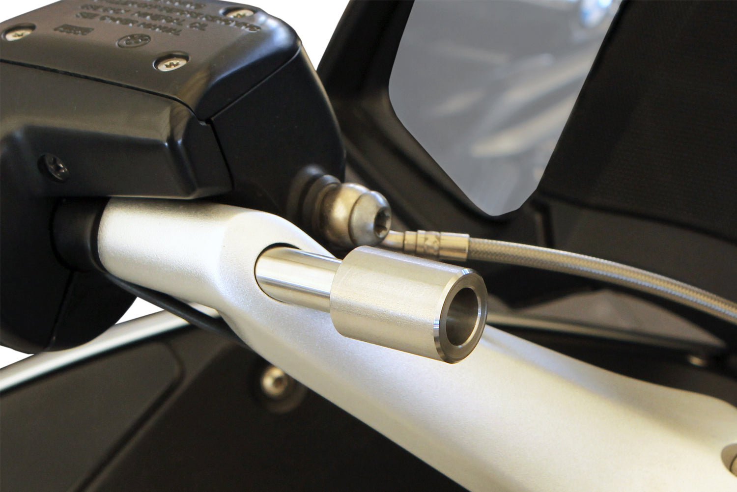 Om ervoor te zorgen dat de briljante SP-Connect motorstuurhouder ook in combinatie met de korte sturen van de R 1150 RT en R 1200 RT (-2009) gebruikt kan worden, hebben we deze strak afgewerkte adapter van gedraaid staal ontwikkeld. Deze heeft aan de ene kant een adapter en aan de andere kant een cilindrisch uiteinde en is doorgeboord.