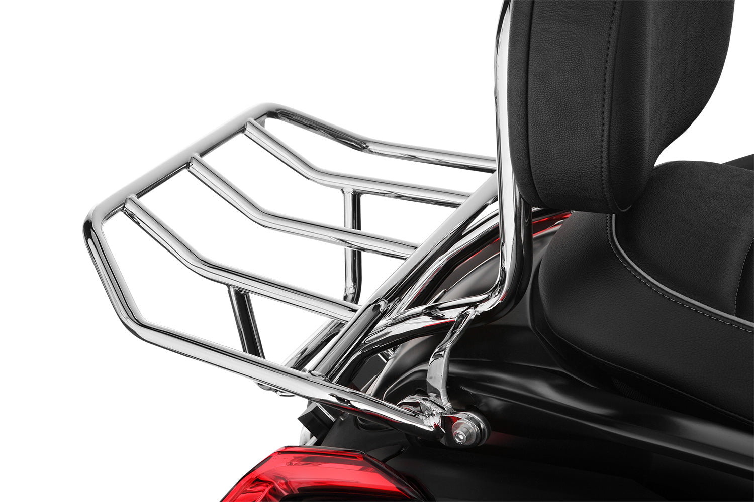 Deze bagagedrager is de perfecte oplossing voor alle rijders die geen bagage op hun Bagger willen kwijtraken. Bovendien wordt de bagage dicht bij het zwaartepunt opgeborgen en heeft het geen negatieve invloed op het rijgedrag.