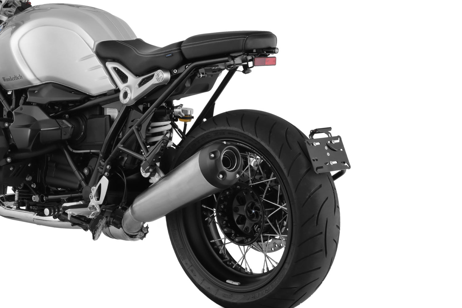 Discrete, lichte kentekenplaathouder past uitstekend bij de sportieve lijn van de roadster en laat het zicht op het achterwiel vrij. De kabeldoorvoer is onzichtbaar in de leidingen, de LED-kentekenplaatverlichting kan van bovenaf of van opzij worden bevestigd. De kentekenplaat is in hoogte en kantelbaar. Stabiele gepoedercoate roestvrijstalen buisconstructie. Kan worden gecombineerd met noppenbanden en 180s- en 190s-banden.