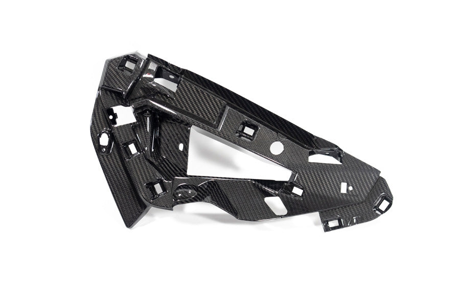 This aerospace material boasts up to 70% weight savings compared to the standard part and fully utilises its potential with its weight-specific stiffness. The shape always follows the function and integrates perfectly into the motorcycle's design. The lines of the respective machine, as well as the material and surface texture of adjacent standard components, are taken into consideration. This carbon component accentuates the high-tech appeal of your BMW with the unique look and feel of genuine carbon.
