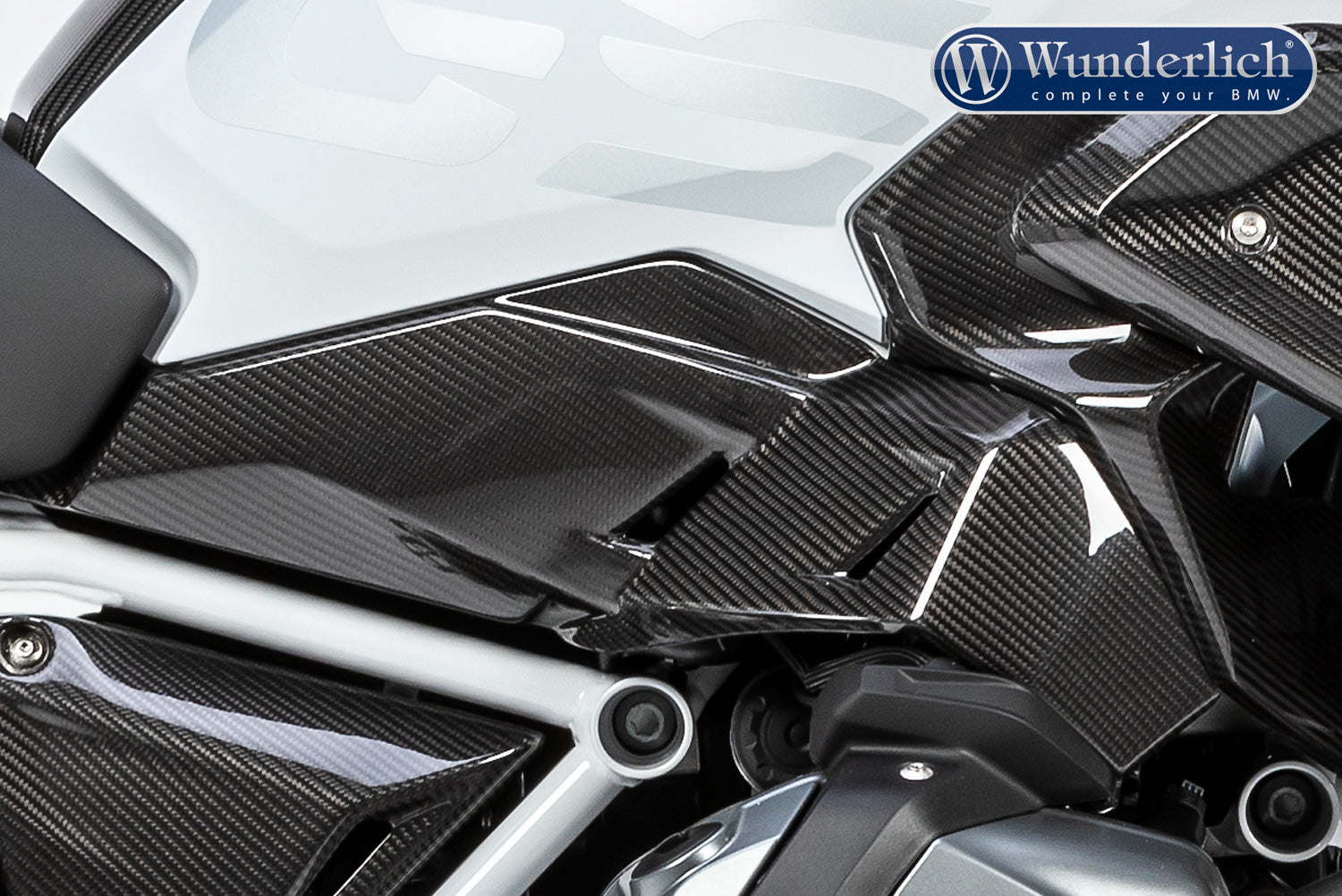 The tank cover in Carbon for the BMW R 1250 GS is a direct replacement for the original component and contributes mainly to weight saving on the motorcycle and a higher stiffness of the parts..