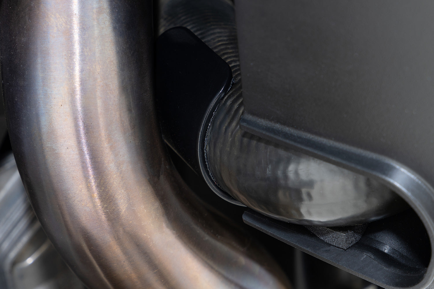 The heat shield plate comes with an insulating heat protection wrap and is simply screwed down to the bracket which also attaches to the radiator. The shield plate fully encloses the hose on the side facing the manifold. The metal is heat-reflecting, which boosts the insulating effect of the heat protection wrap.