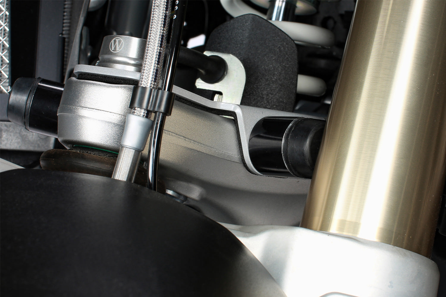 Unfortunately, the original steering stops are simply not strong enough. They can be damaged by harmless falls or a strong knock. If this happens, the top yoke (upper clamp) can be damaged, and the fork tubes and Telelever are vulnerable as well. Additionally, on the 1200 models the brake lines could be squashed causing brake failure. All this can lead to expensive repairs and a great deal of aggravation. All the listed original parts are not available usually at bargain discount prices, so the investment in damage prevention is always worthwhile.