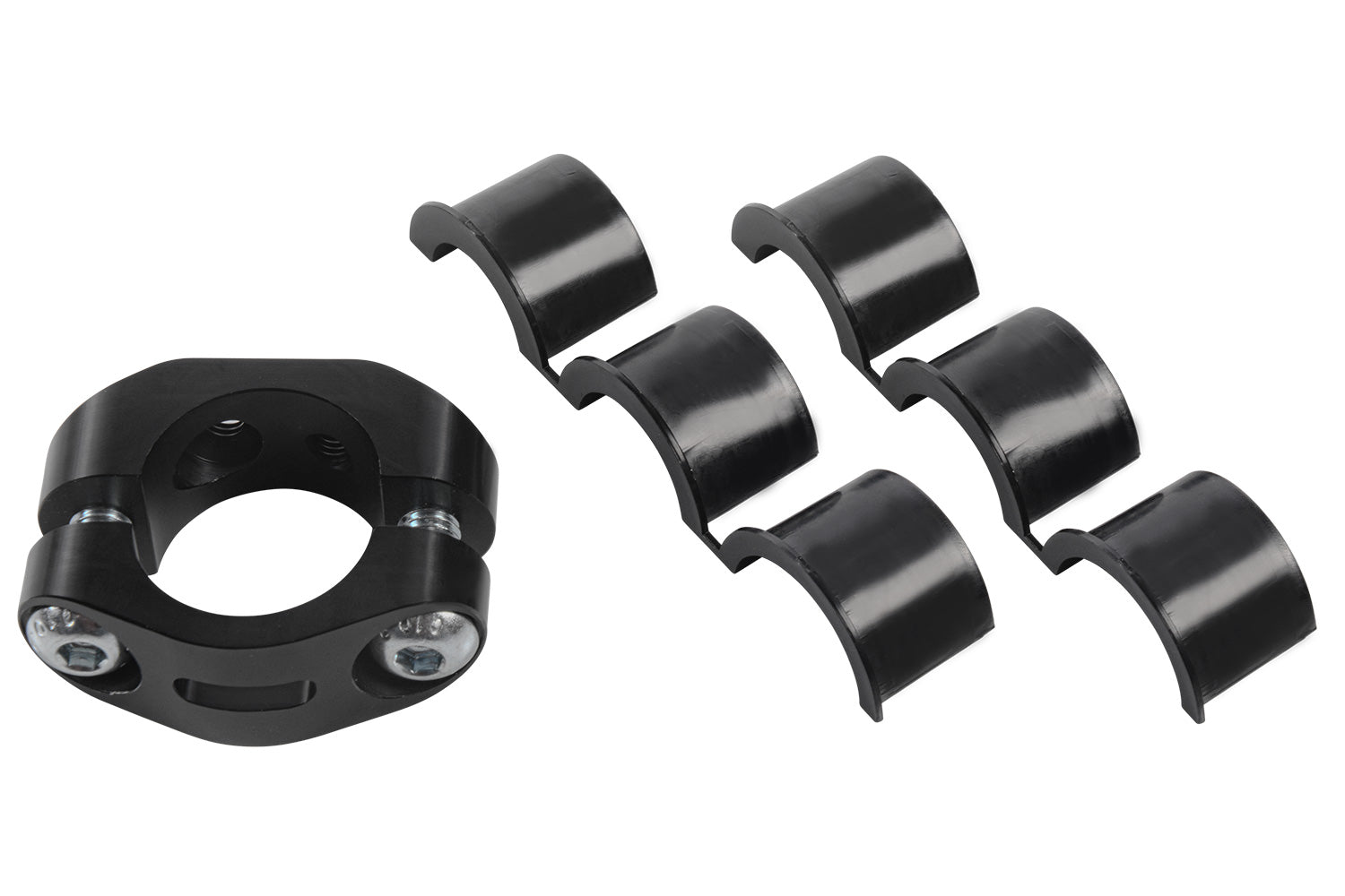 The all-rounder clamp: thanks to the half shell spacers, fits to any tube diameters, from 20 to 28,5 mm, and offers almost unlimited mounting possibilities.